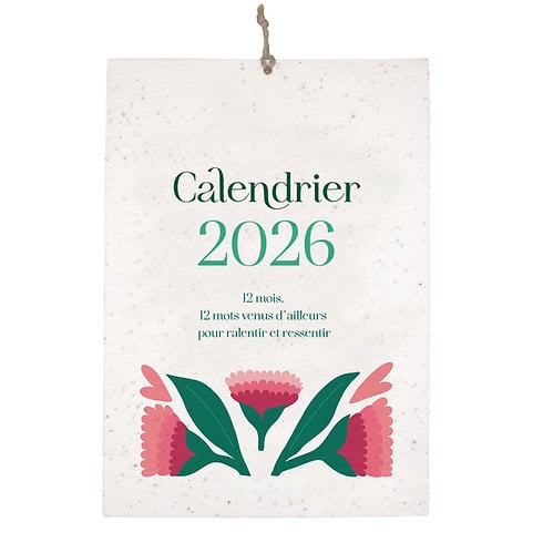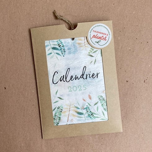Chaque calendrier est composé de 13 feuilles ensemencées de 13 graines différentes, un dos en papier recyclé rigide + des conseils de plantation, le tout relié par une ficelle en lin française, glissé dans une enveloppe cadeau en kraft avec une illustration offerte.