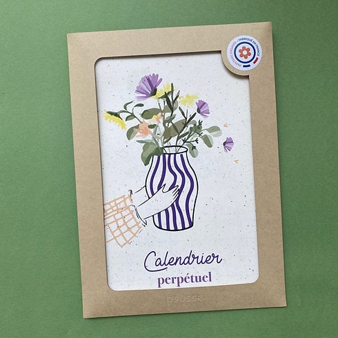 Un calendrier au format A6 (carte postale) réalisé dans du papier à planter.