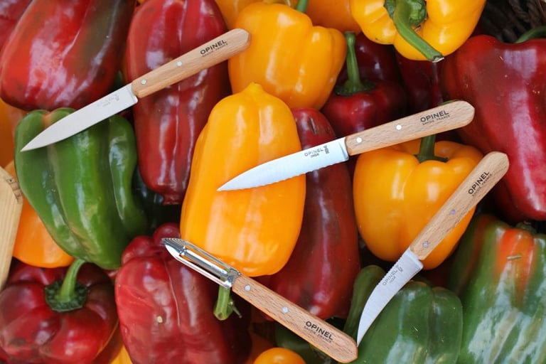 Couteau d'office, couteau cranté et éplucheur fabriqués en France.