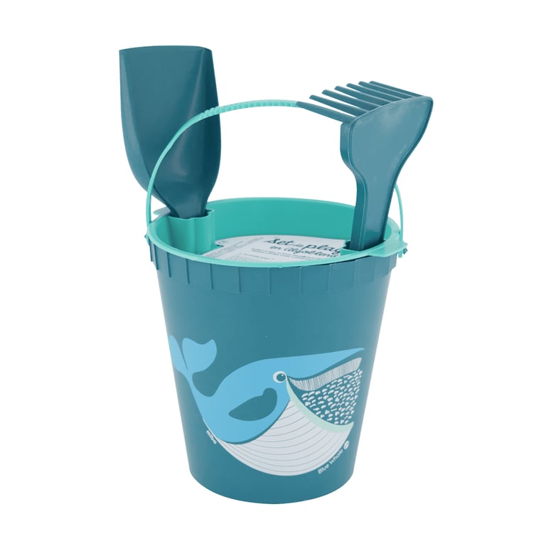 L'algue remplace le plastique… Et oui ! Coq en Pâte propose des jouets réalisés en une matière écologique innovante, l'Algoblend®, qui utilise des algues brunes récoltées en Bretagne. Le set de plage (seau, pelle, tamis et râteau) entièrement fabriqué en Bretagne (France), sera le compagnon idéal pour s'amuser sur la plage !